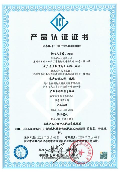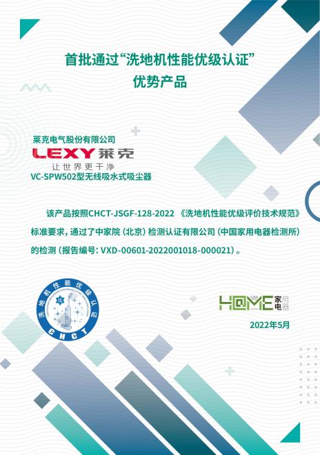 在生活品質(zhì)提高與疫情影響的雙重因素下,中國消費者對家庭清潔的需求快速提升。洗地機的出現(xiàn)使人們在解放雙手的道路上更近一步。洗地機是“吸拖洗”功能的集成,不僅讓清潔過程簡單、輕松,更滿足了人們?nèi)找婵粗氐慕】祷鍧嵭枨?。洗地機近年來的火爆,讓消費者更加關(guān)注洗地機的質(zhì)量問題。2021年9月3日中國家用電器研究院聯(lián)合行業(yè)主流品牌企業(yè)在中國標(biāo)準(zhǔn)化協(xié)會立項了《家用洗地機性能要求及等級評價》團體標(biāo)準(zhǔn),該標(biāo)準(zhǔn)歷時4個月完成制定,并于2021年12月24日起正式實施(標(biāo)準(zhǔn)號是T/CAS 551-2021),該標(biāo)準(zhǔn)是行業(yè)內(nèi)首個洗地機質(zhì)量等級評價標(biāo)準(zhǔn)。中家院(北京)檢測認(rèn)證有限公司依據(jù)該標(biāo)準(zhǔn)重點推出“洗地機性能優(yōu)級認(rèn)證”,并設(shè)計了洗地機專屬性能認(rèn)證標(biāo)志。